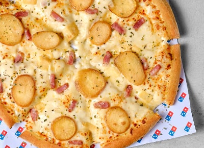 Crème fraîche légère française, mozzarella, lardons fumés, pommes de terre françaises sautées, Reblochon de Savoie AOP, origan.