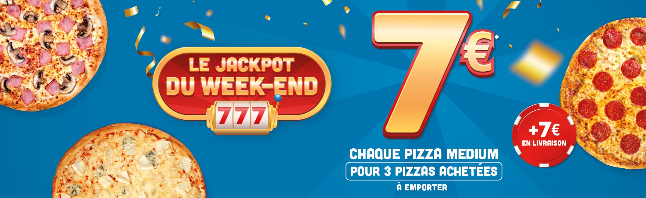 Profitez de 3 pizzas medium à 7€ chacune*.